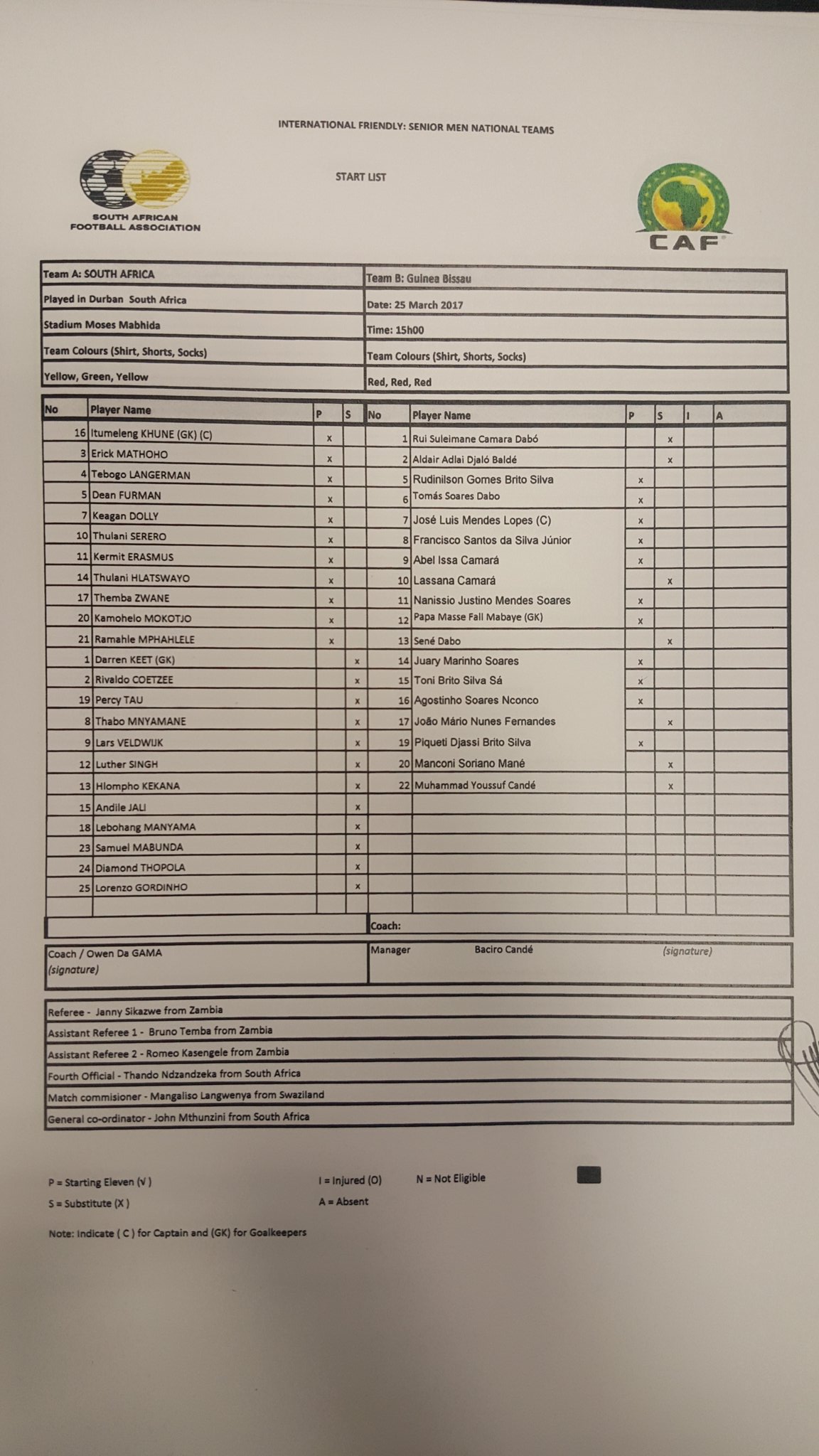 A partida serviu ainda para a única novidade da lista de Baciro Candé, Manconi Soriano Baldé (Sori Baldé) e o Guarda-Redes, Rui Dabó estrearem com corres nacionais.