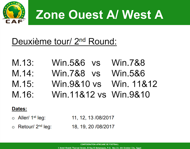 Caso a Seleção Nacional apurar para a fase seguinte, terá a frente como adversário, Senegal ou Serra-Leoa que se defrontam na primeira eliminatória.Os jogos da segunda eliminatória estão marcados para o mês de Agosto, sendo a primeira mão a disputar entre 11, 12, 13 de Agosto de 2017 e a segunda mão para numa data a marcar entre 18, 19, e 20 de Agosto do corrente ano.