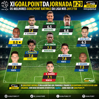 O médio guineense Alfa Semedo figura no onze ideal da vigésima nona jornada da primeira liga portuguesa, de acordo com os dados publicados pela GoalPoint – empresa especializada em análise e estatísticas no futebol.
