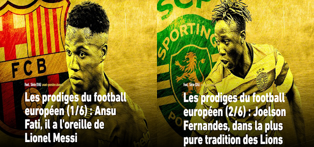 O conceituado jornal francês está a realizar uma série de reportagens com seis jovens joagadores considerados pelo mesmo como maravilhas do futebol europeu. Na lista de seis jogadores que durante esta semana relatarão as suas histórias, constam dois guineenses Anssumane Fati (Barcelona) e Joelson Fernandes (Sporting), ambos com apenas dezasseis anos.