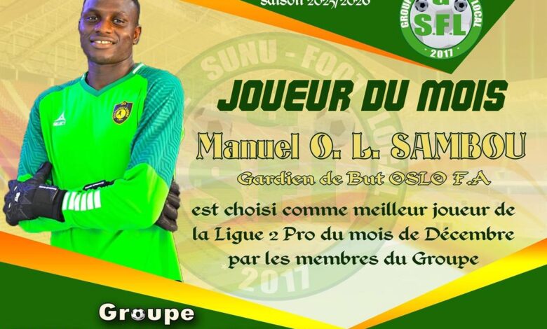 O internacional pela seleção sub-20 da Guiné-Bissau, Manuel Osvaldo Sambú (Nelito), que atua ao serviço do Sunu Sport, foi eleito, o jogador do mês de dezembro, da segunda Liga do Senegal.